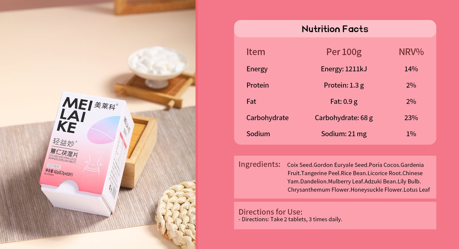 Fragrance-free 、No preservatives、No hormones、No coloring Synergistic blend of coix seed & poria (dampness drainage), red bean & lotus leaf (metabolic activation), dandelion & honeysuckle (gentle detox), tangerine peel & dioscorea (bloat relief). Quad-action flush: eliminate excess fluid + accelerate calorie burn + regulate bowel movement + reduce puffiness. Targets modern stagnation: water retention, slow digestion, and post-meal swelling. Refreshing peppermint-flavored tabs, vegan-friendly with no artificial additives. Clinically-formulated TCM-Western fusion for sustainable fluid balance and daily detox.