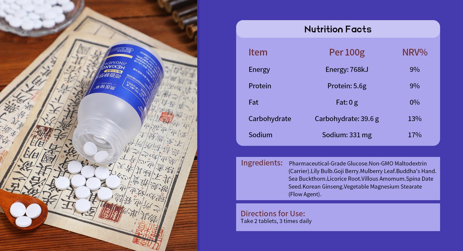 We apply advanced tablet-crafting technology to micronize herbs (cell-wall disrupted for bioavailability), blending ziziphus, lily, sea buckthorn into convenient chewables.