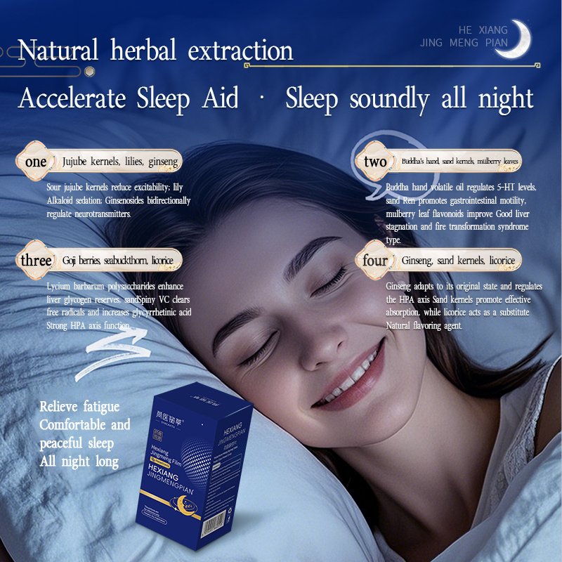 Fragrance-free 、No preservatives、No hormones、No coloring Blend ziziphus seed (calms mind), lily bulb (soothes nerves), sea buckthorn (stress defense), bergamot (relaxes tension), mulberry leaf (balances circadian), amomum (eases digestion), goji (nourishes essence), and ginseng (recharges energy). Eight botanicals work synergistically to accelerate sleep onset, prolong deep sleep cycles, and reduce midnight awakenings. Sugar-free chewables with lavender undertones, melatonin-free formula. Targets modern stressors: anxiety-induced insomnia & mental fatigue. Restores natural sleep rhythm within 7 days.